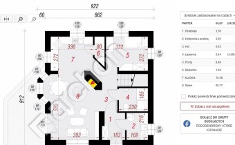 Dom wybudowany według projektu „Dom w Rododendronach 3” (Archon), o powierzchni całkowitej 242 m² oraz powierzchni użytkowej 164 m², usytuowany na widokowej działce o powierzchni 15 arów.